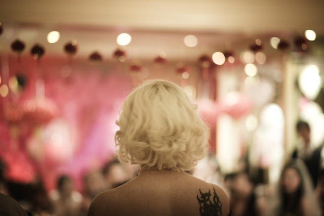 LY. Je dirais plutôt que le corps et les regards ne sont pas séparés. Il y a d’ailleurs une très belle scène, où Mimi se démaquille, où le masque tombe et où sa solitude apparaît. Et puis elle n’est pas là pour être déshabillée, pour être un objet passif, mais bien pour se déshabiller et être un sujet actif. Même si le film repose sur le spectacle, il ne s’agit pas d’apparences. Ou plutôt si : il s’agit d’un film sur les apparences et l’intériorité. La première scène est en cela signifiante : elle s’ouvre sur les coulisses avant le spectacle, les filles se préparent. C’est un bonheur de corps vrais, qui ne sont pas là pour les apparences, mais qui témoignent d’un vécu : les tatouages, les rides, les plis, la graisse ne sont là que pour signifier que ces corps ont une vie, pour dégager les standards et les ranger dans le domaine du virtuel.